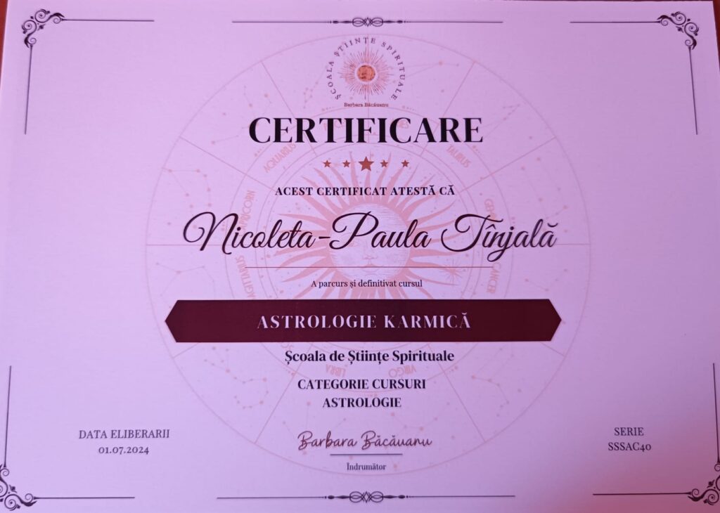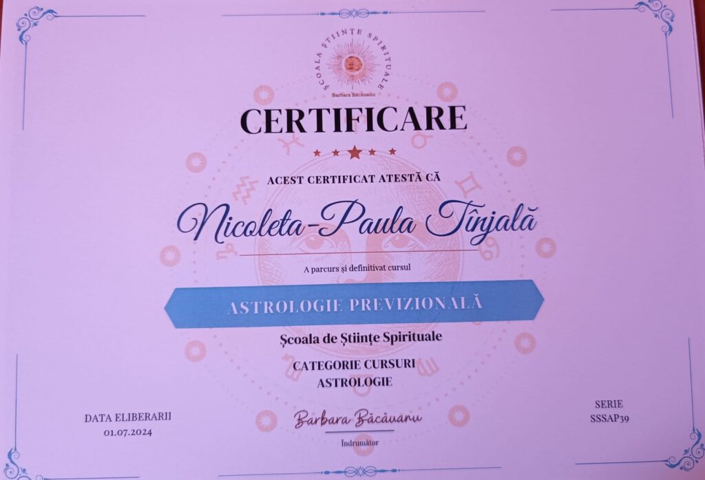 Formare recunoscută în astrologie, dezvoltare personală și domenii conexe